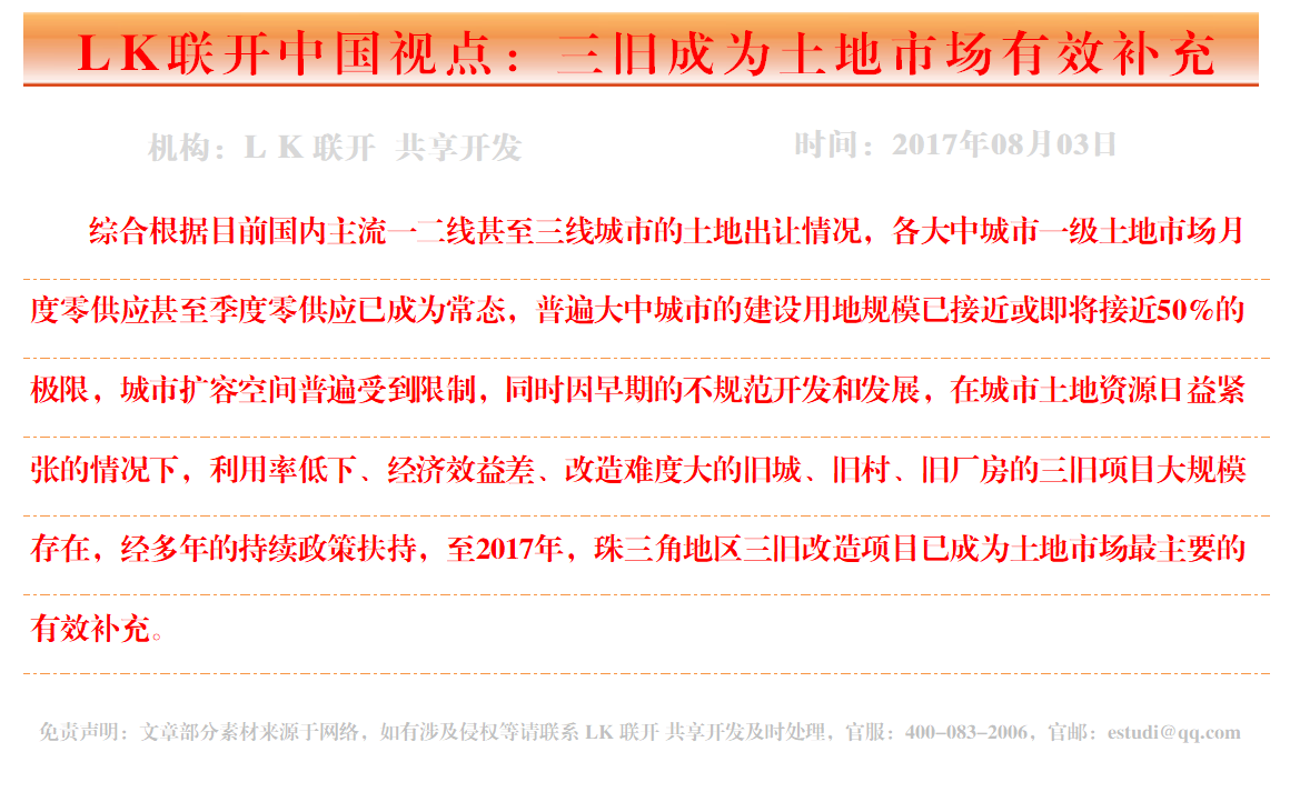 LK联开中国视点:三旧成为土地市场有效补充