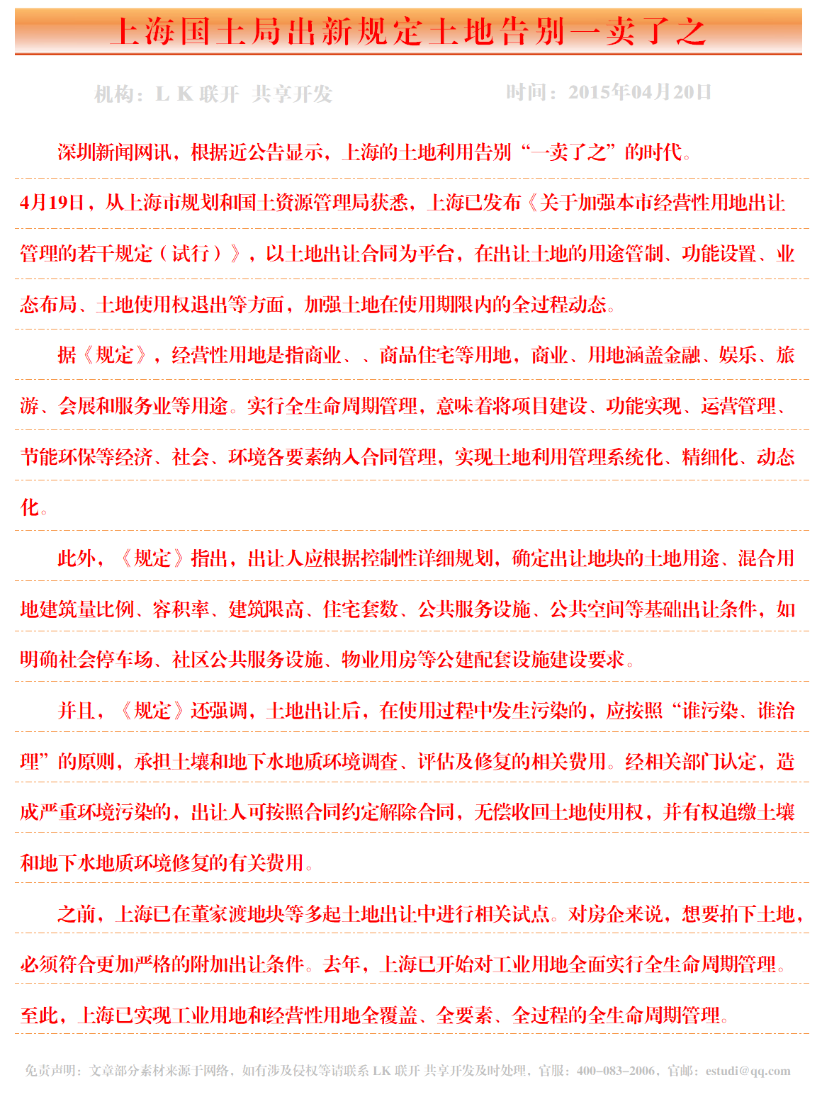 上海国土局出新规定土地告别一卖了之