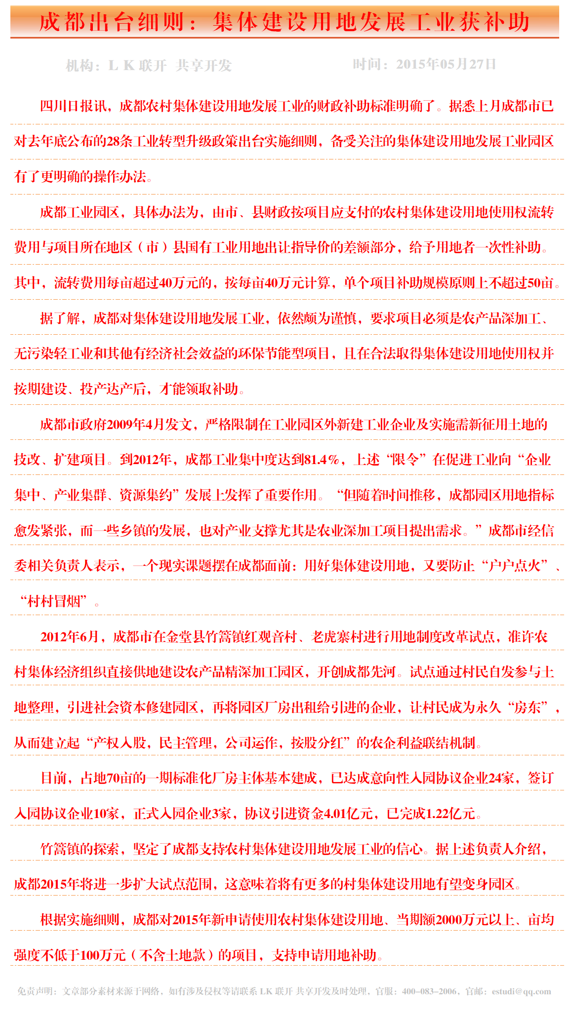 成都出台细则:集体建设用地发展工业获补助