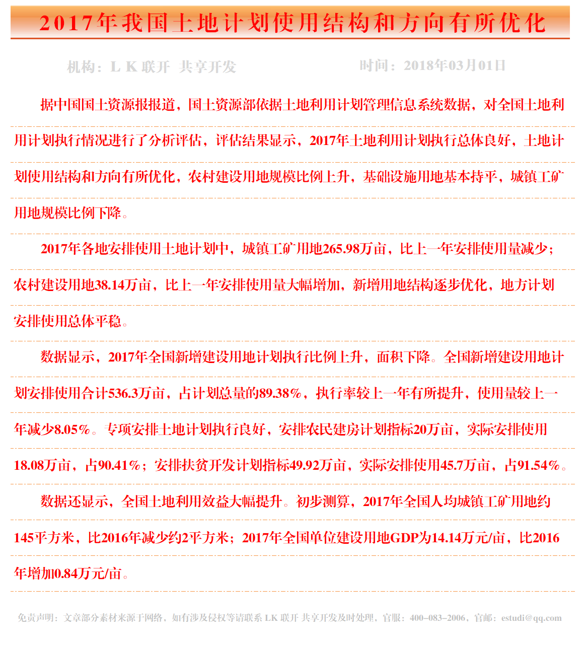2017年我国土地计划使用结构和方向有所优化
