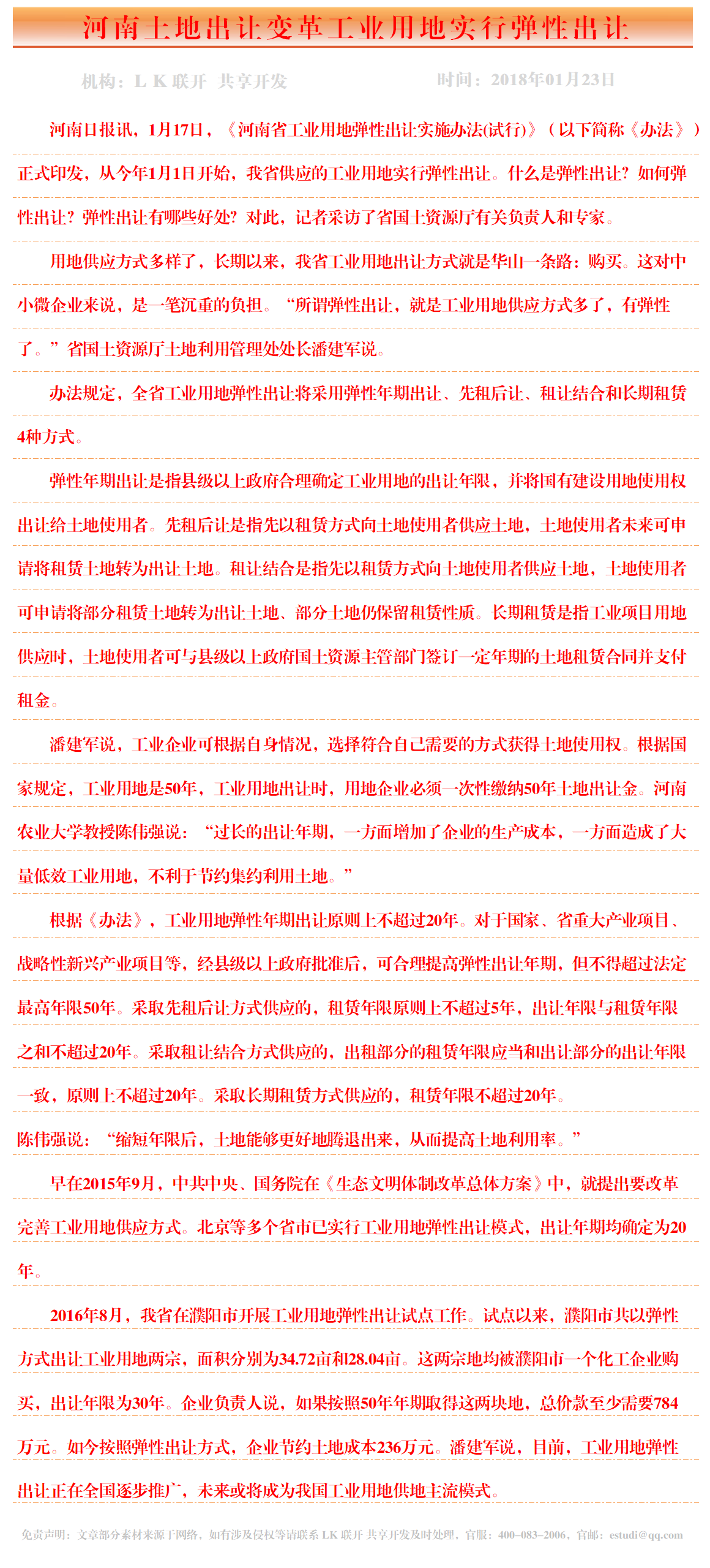 河南土地出让变革工业用地实行弹性出让