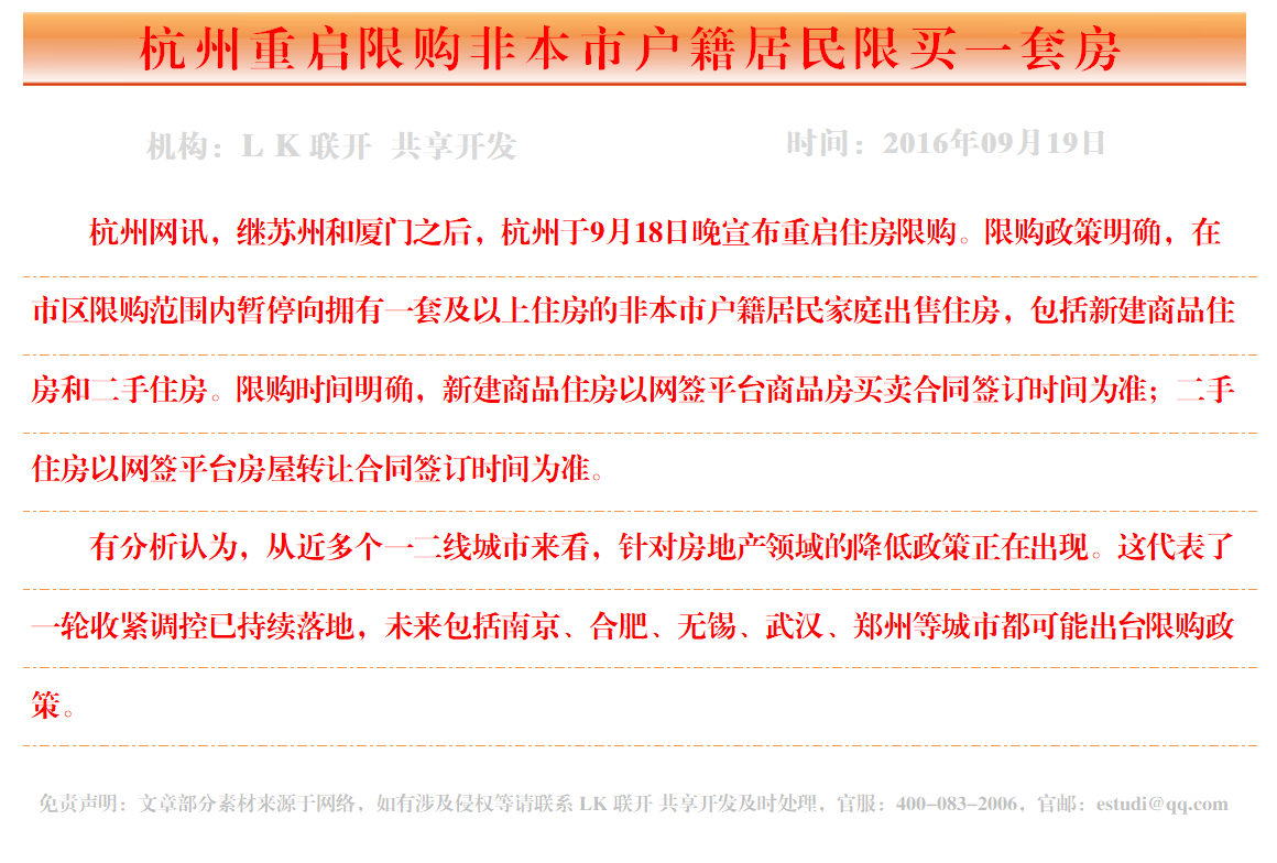 杭州重启限购非本市户籍居民限买一套房