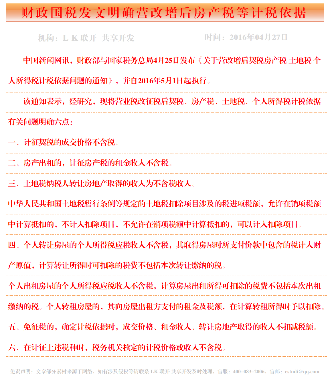 上一条:财政国税发文明确营改增后房产税等计税依据