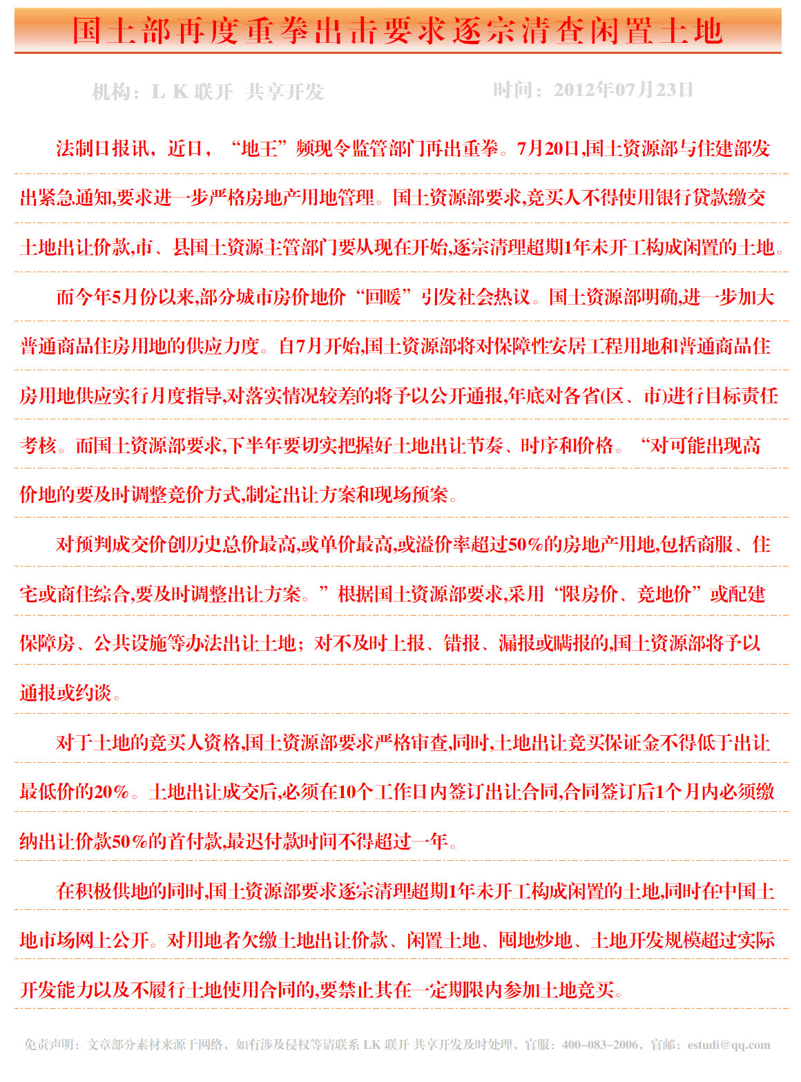 广东国土厅:批而未供和闲置地将降至100万亩内