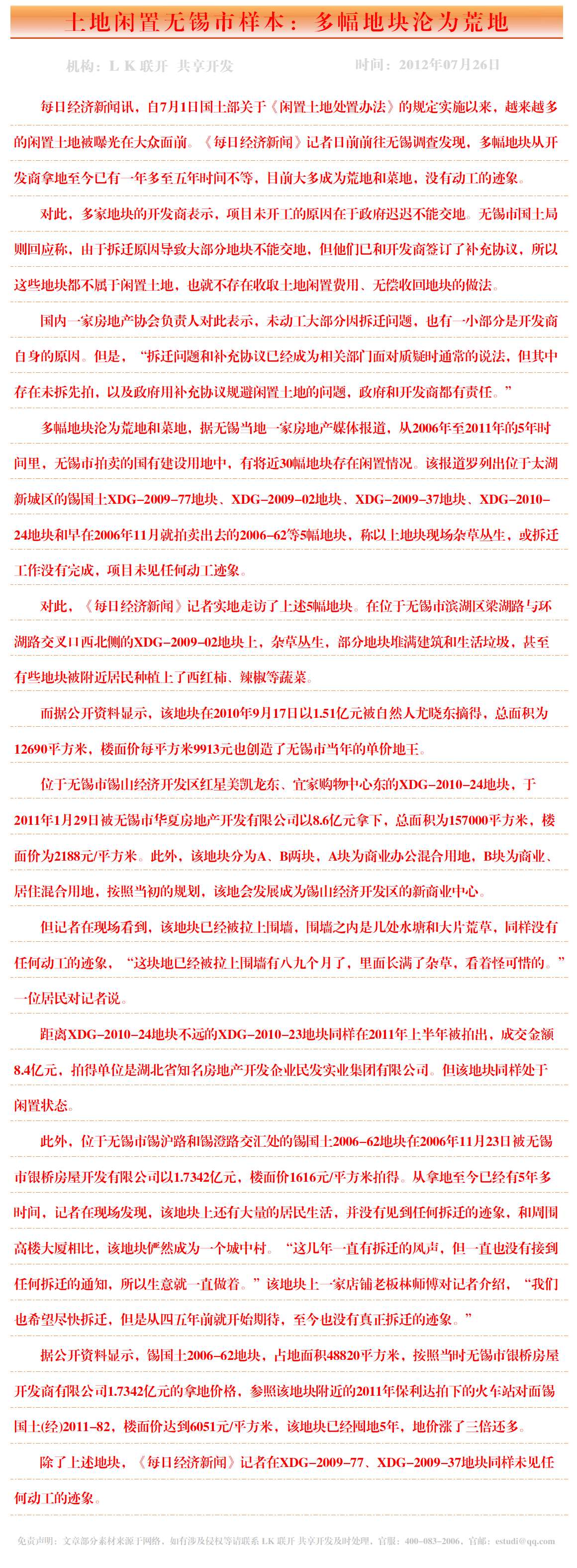 土地闲置无锡市样本:多幅地块沦为荒地
