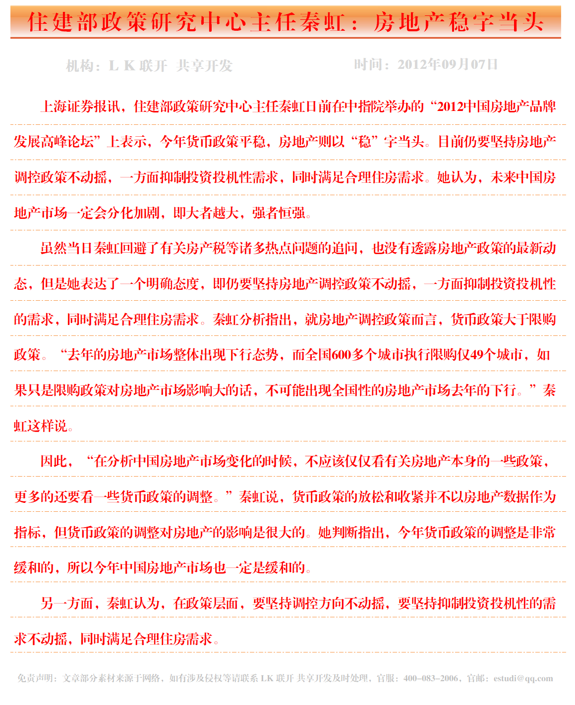 住建部政策研究中心主任秦虹:房地产稳字当头
