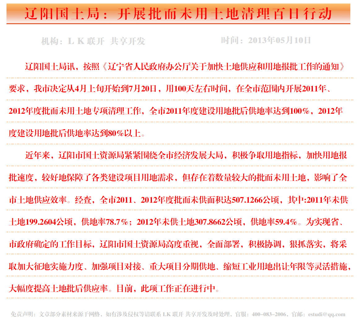 辽阳国土局:开展批而未用土地清理百日行动