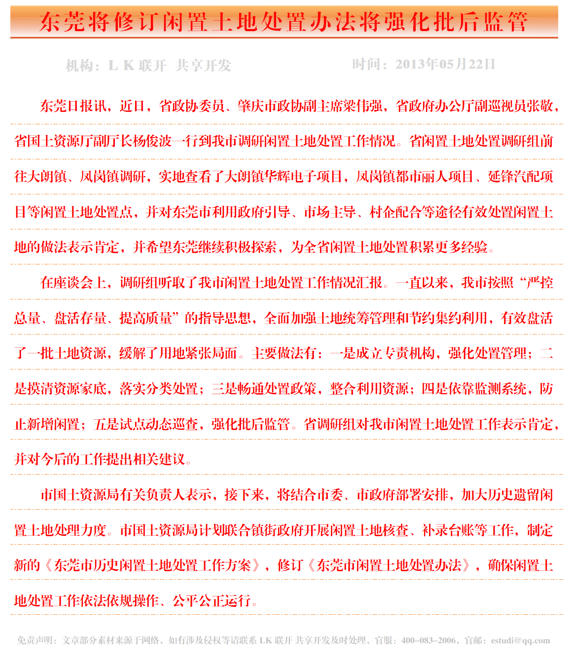 广东国土厅:批而未供和闲置地将降至100万亩内
