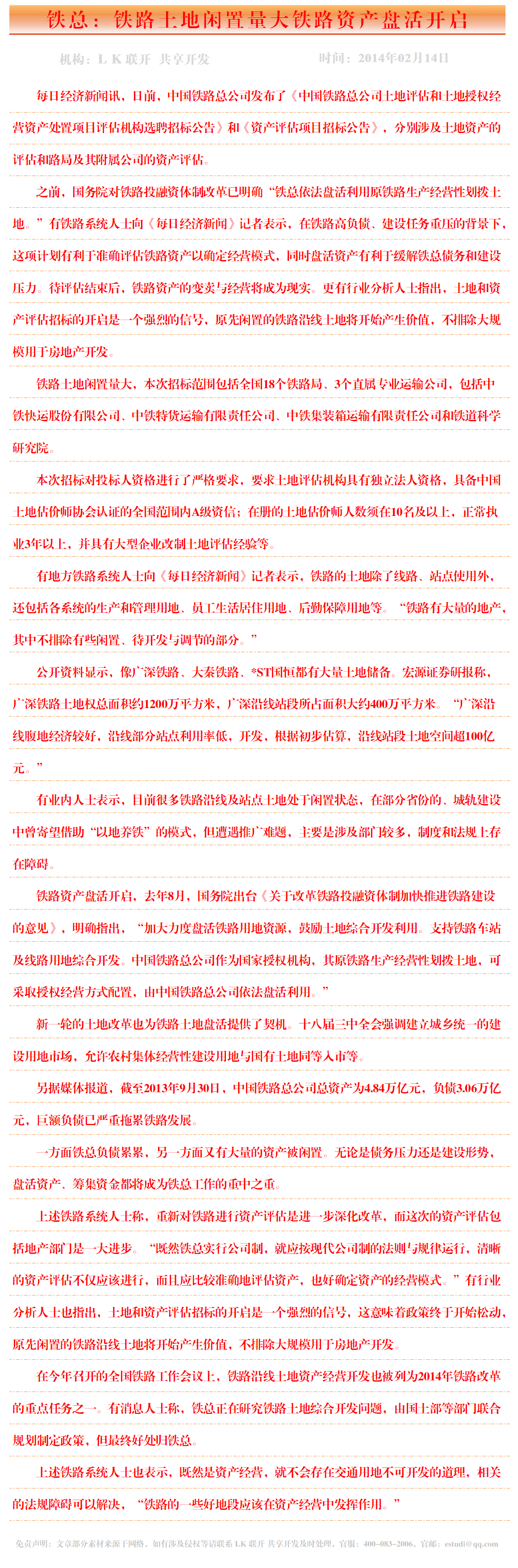 铁总:铁路土地闲置量大铁路资产盘活开启