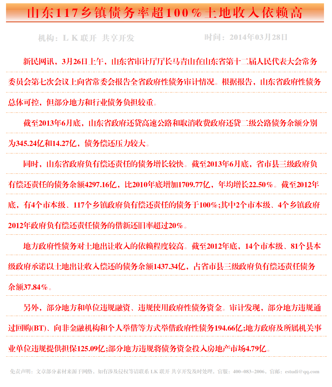 山东117乡镇债务率超100%土地收入依赖高