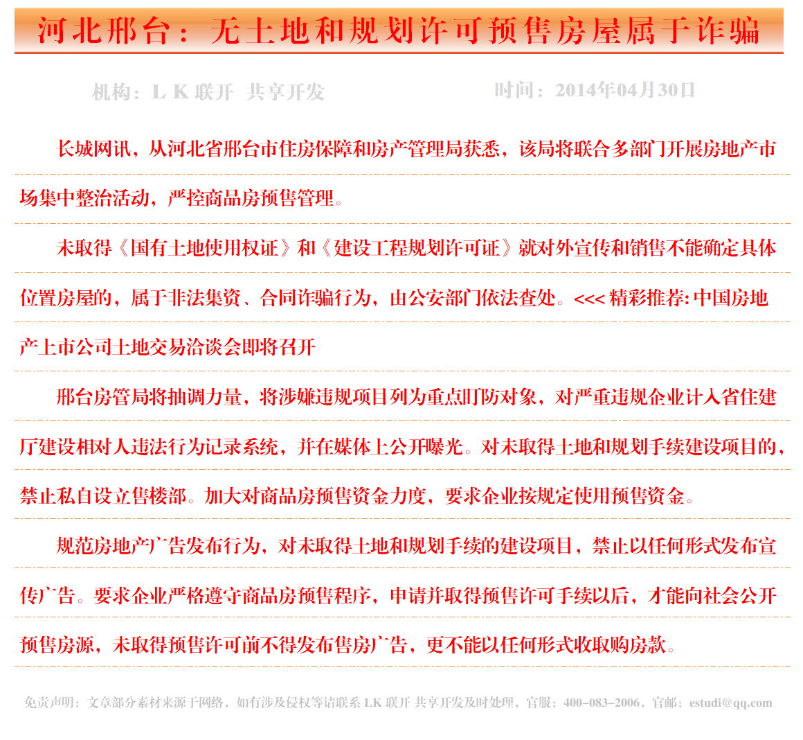 河北邢台:无土地和规划许可预售房屋属于诈骗