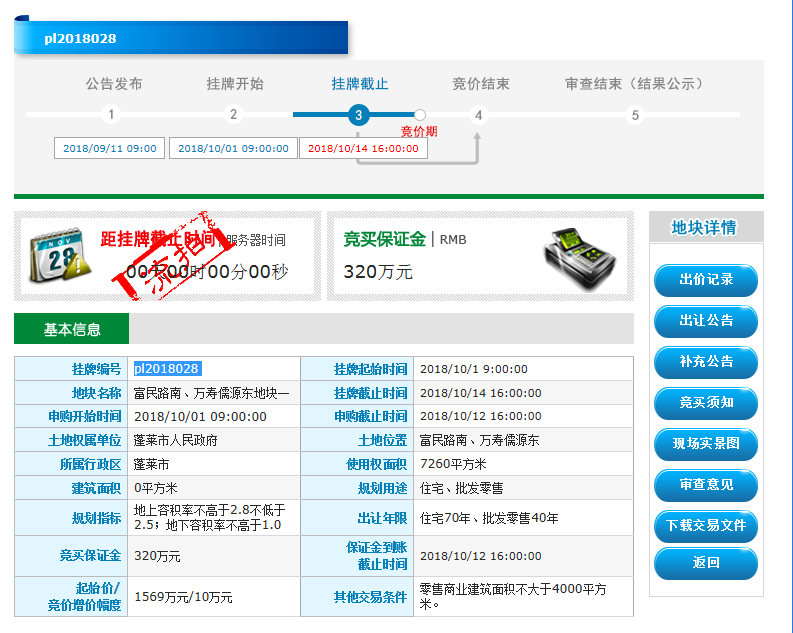 | 挂牌截止时间 | 2018-10-14 16:00:00 | ||||||