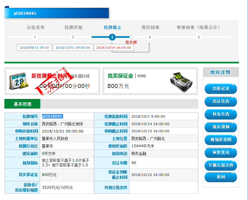 | 挂牌截止时间 | 2018-10-14 16:00:00 | ||||||