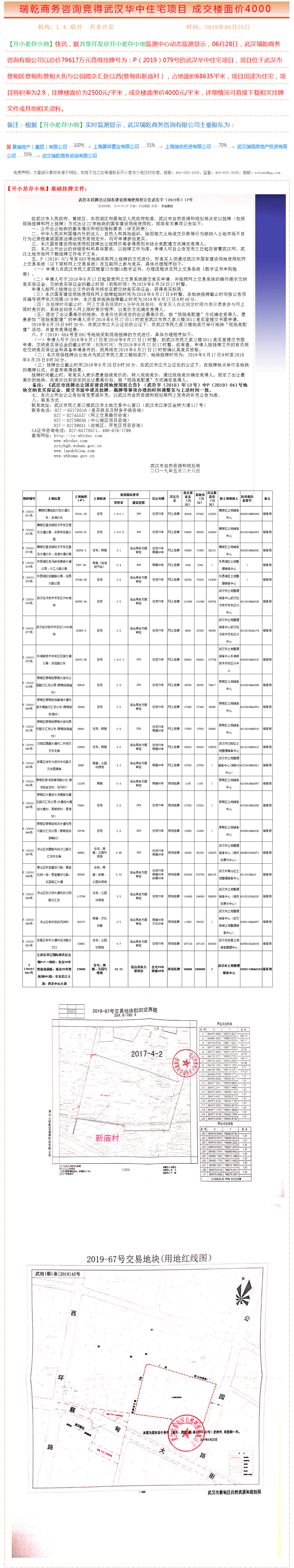 | 挂牌楼面单价 | 2500 | 成交楼面单价 | 4000 | 挂牌成交单位 | 武汉瑞乾商务咨询有限公司 | ||