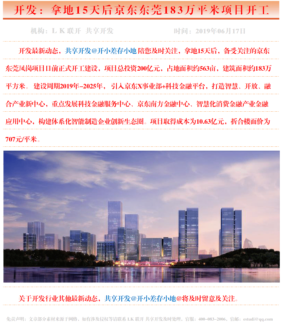 京东竞得东莞凤岗150万平米产业项目楼面707元